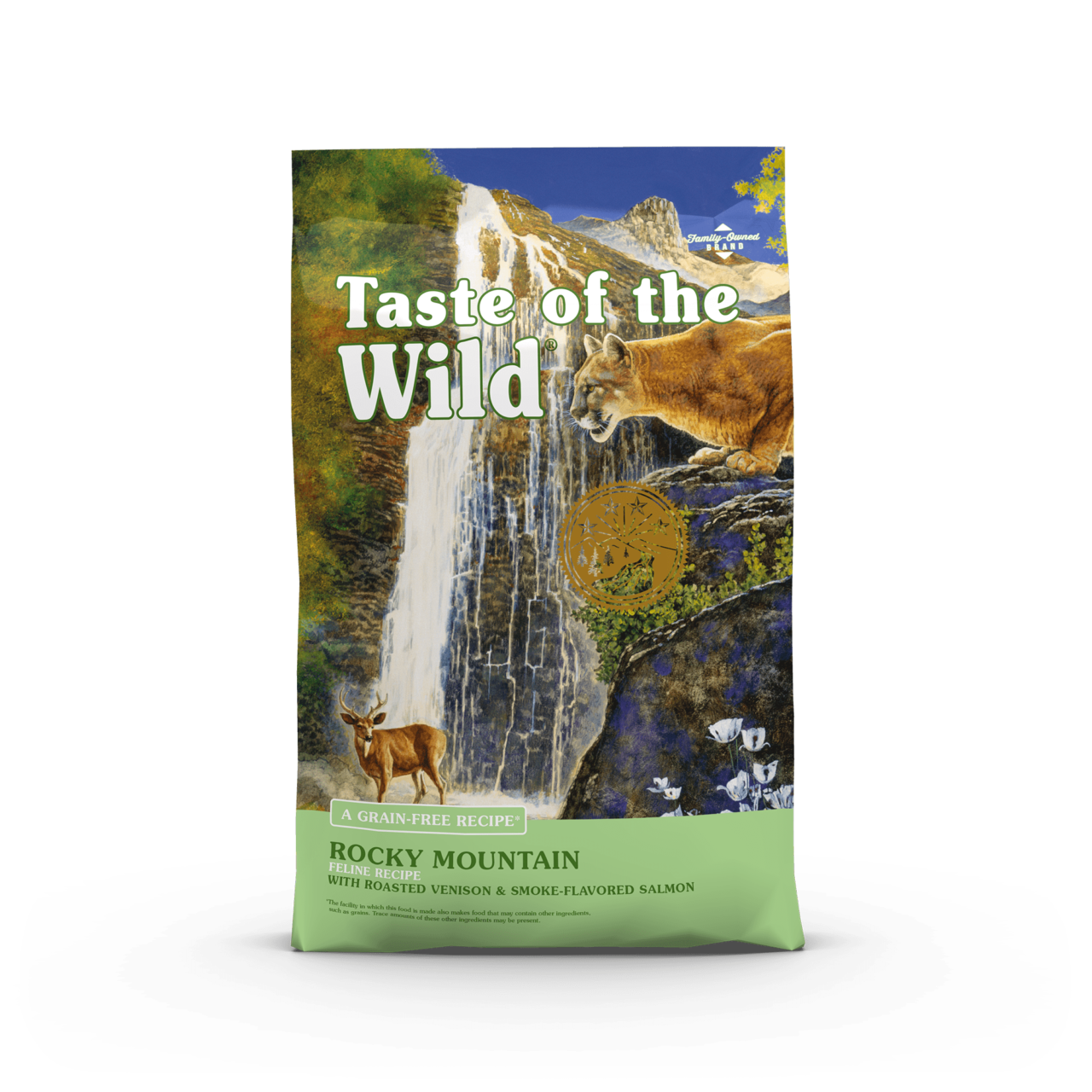 Taste of the Wild (USA) brings recipes inspired by the natural feline diet — high in protein, low in grains, with novel meats like trout, venison, and salmon.