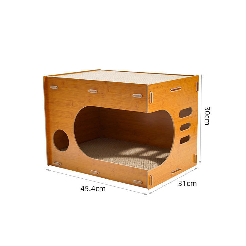 2-in-1 Wooden Cat House & Scratcher
