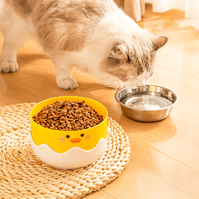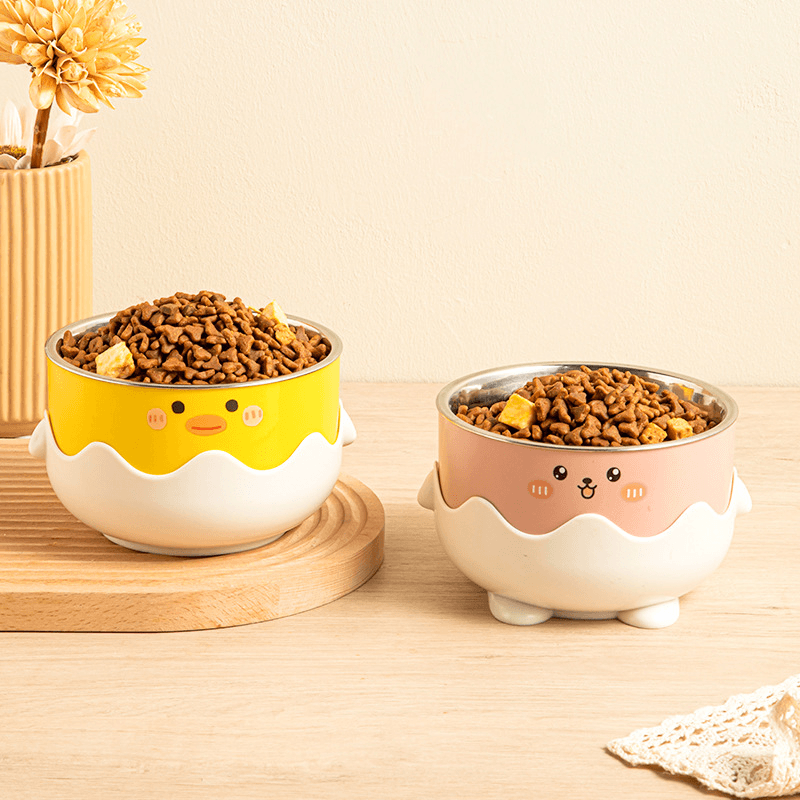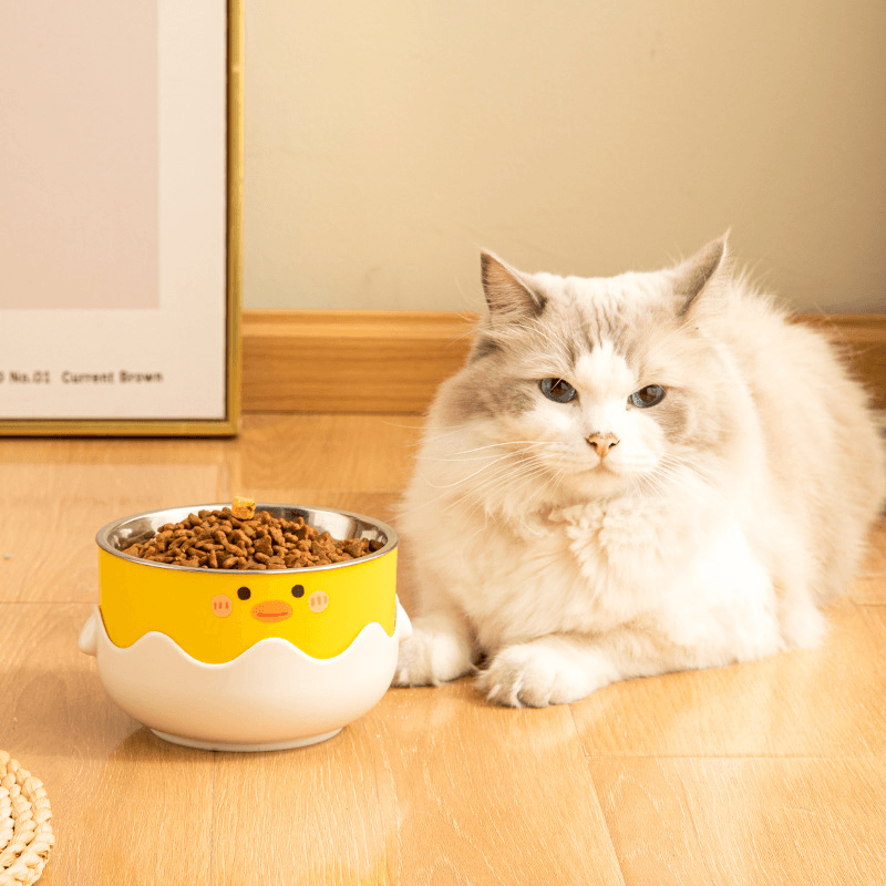 A cute yet functional elevated cat bowl designed to improve feeding posture, reduce strain, and keep mealtime clean. Features a stainless steel inner bowl and a stable, pet-friendly base for everyday comfort.