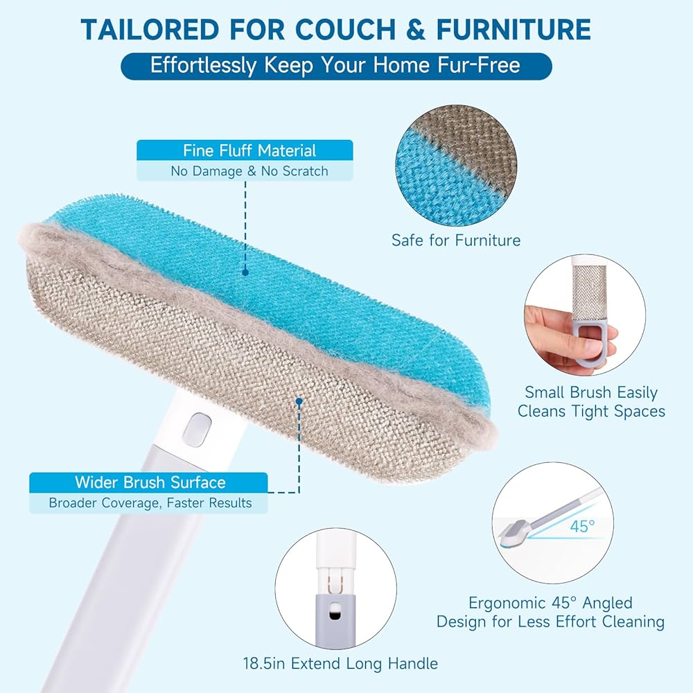 This Pet Hair Remover is tailored for pet owners who want an easy, mess-free way to clean furniture, bedding, and upholstery. Its fine-textured fabric lifts and traps pet hair effectively from all surfaces — even stubborn fur embedded in fabrics. The long ergonomic handle and angled design make it easy to reach under furniture or into corners, offering a quick and efficient cleaning experience without using adhesives or electricity.